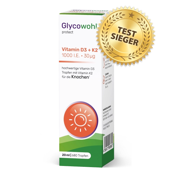 Unser klarer Testsieger ist Glycowohl® protect Vitamin D3 + K2. Es bietet eine starke, gut abgestimmte Wirkstoffkombination mit hochwertigen Markenrohstoffen wie K2Vital®, ist sicher dosiert, geschmacklich neutral und durch ein faires Preis-Leistungs-Verhältnis sowie eine Geld-zurück-Garantie besonders verbraucherfreundlich.