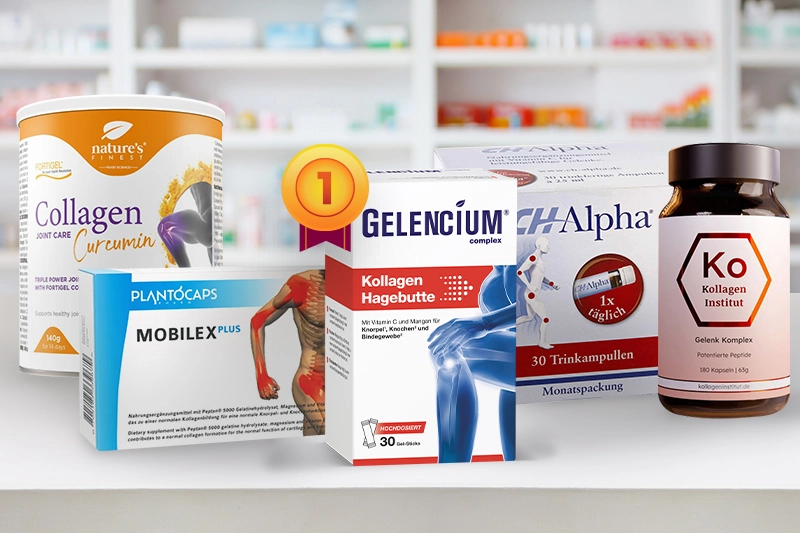 Im großen Vergleichstest unserer Expert*innen-Redaktion konnte sich Gelencium® Kollagen Hagebutte als Testsieger gegen eine starke Konkurrenz durchsetzen. Das Präparat hat die Testerinnen und Tester in allen Kriterien überzeugt. Besonders hoben die Expert*innen den hocheffizienten synergetischen Wirkstoffkomplex hervor, der dank des enthaltenen patentierten TENDOFORTE® Kollagens und dem Hagebuttenextrakt in hoher Dosierung, sowie den Gelenknährstoffen Vitamin C und Mangan in hohem Maße zur Förderung der Gelenkgesundheit beiträgt. Die sehr gute Wirkung wird zudem von Anwenderinnen und Anwendern sowie durch zahlreiche Studien umfassend bestätigt. Der fruchtige Geschmack im praktischen Stick-Format überzeugte in der B-Note. Abgerundet wird das hervorragende Gesamtergebnis durch ein ausgezeichnetes Preis-Leistungs-Verhältnis und einer konsequenten Geld-zurück-Garantie des Herstellers. Unser Expertenteam ist sich einig: Dieses Präparat können Sie ohne Bedenken risikofrei testen.