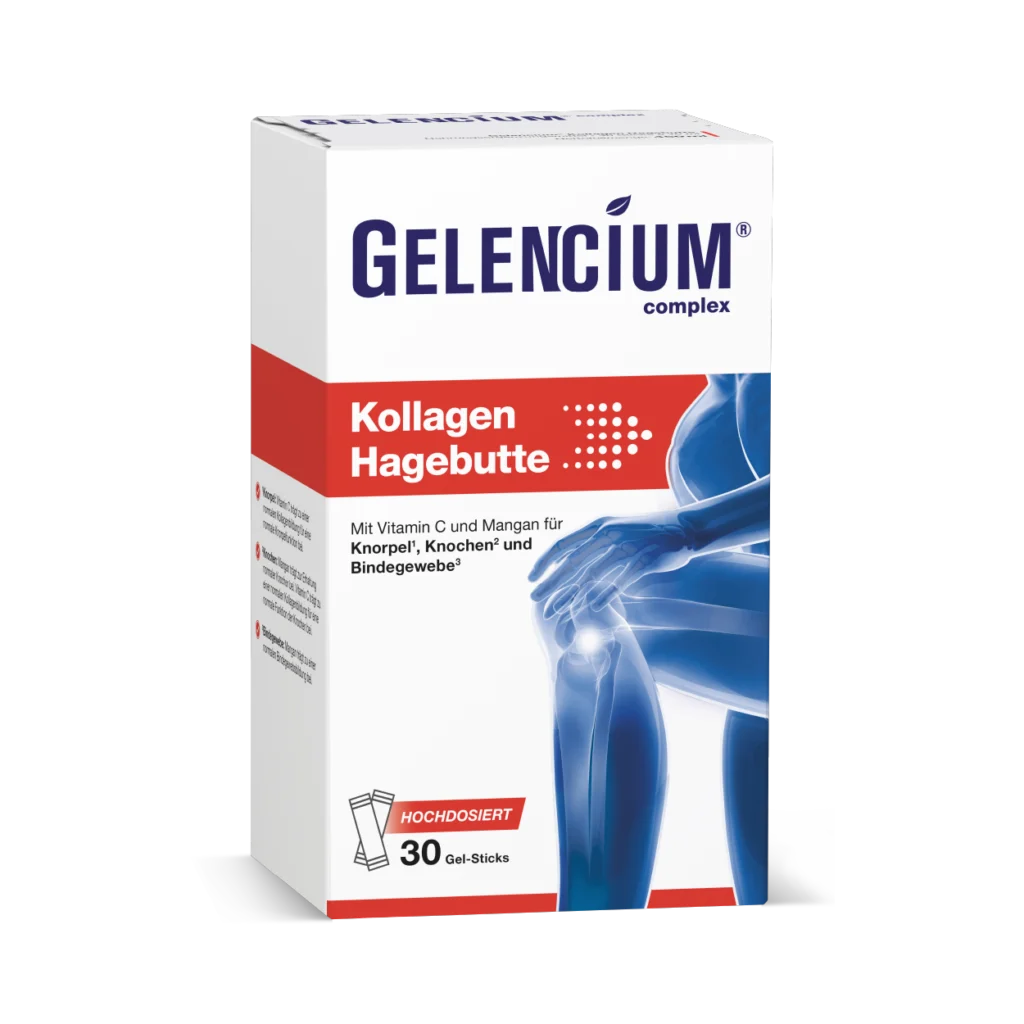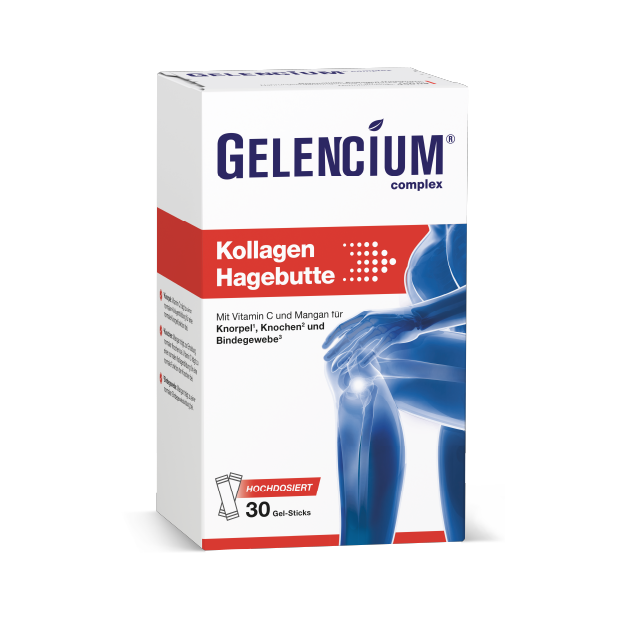 Gelencium Kollagen Hagebutte ist ein hochwirksames Kollagen-Präparat, das mit TENDOFORTE® ein spezielles patentiertes Kollagen enthält, dessen Wirksamkeit bei Gelenkbeschwerden durch zahlreiche Studien belegt ist. Mit 5.000 mg pro Stick ist zudem eine sehr hohe Dosis des Premium-Kollagens enthalten. Sinnvoll ergänzt wird das Kollagen durch weitere wichtige Gelenknährstoffe wie einen hochdosierten Hagebutte-Extrakt – reich an natürlichem Vitamin C – und Mangan. Insgesamt bietet Gelencium Kollagen Hagebutte damit einen hochkonzentrierten Wirkstoffkomplex, der die Gelenkgesundheit umfassend fördert. So wirkt sich der Wirkstoffkomplex nicht nur positiv auf die Gelenke, sondern auch auf das Immunsystem und Bindegewebe aus. Die belegbare Wirkung sorgt bei dem aktuellen Preis pro Packung für ein exzellentes Preis-Leistungs-Verhältnis. Auch wenn das Produkt erst seit kurzer Zeit auf dem Markt ist, runden durchweg positive Kundenmeinungen, eine Geld-zurück-Garantie des Herstellers sowie die einfache Dosierung von 1 Stick täglich das nahezu perfekte Gesamtergebnis ab und machen Gelencium Kollagen Hagebutte zum Testsieger der besten Kollagen-Präparate für die Gelenkgesundheit.